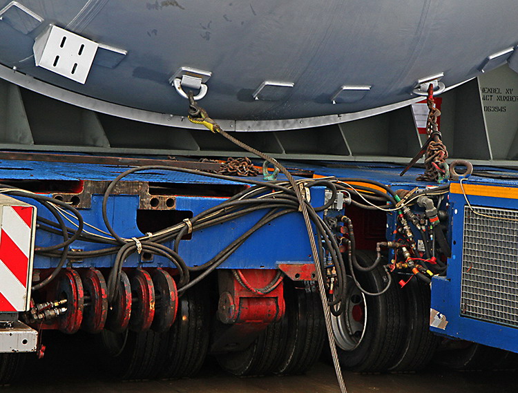 Währenddessen wurden Stahlplatten in die Barge gefahren.