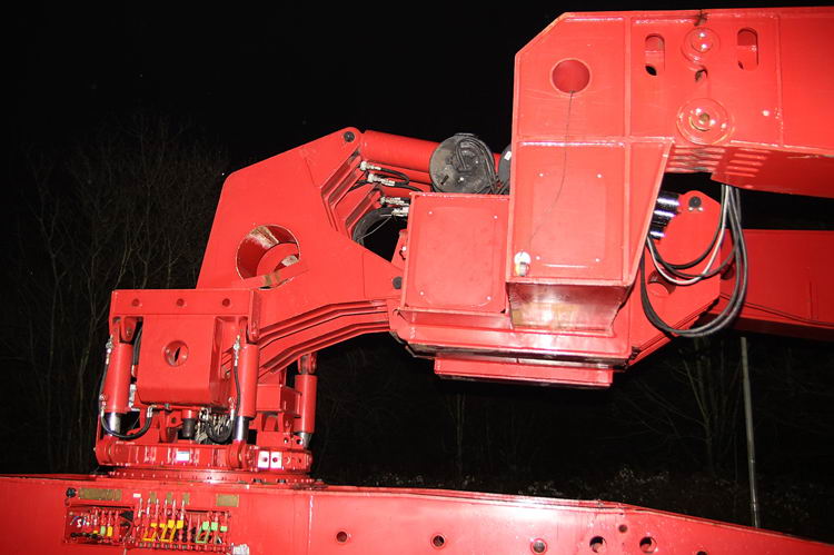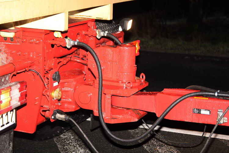 In engen Kurven wurde mit der Hydraulik die Last zwischen den Achslinien angehoben.