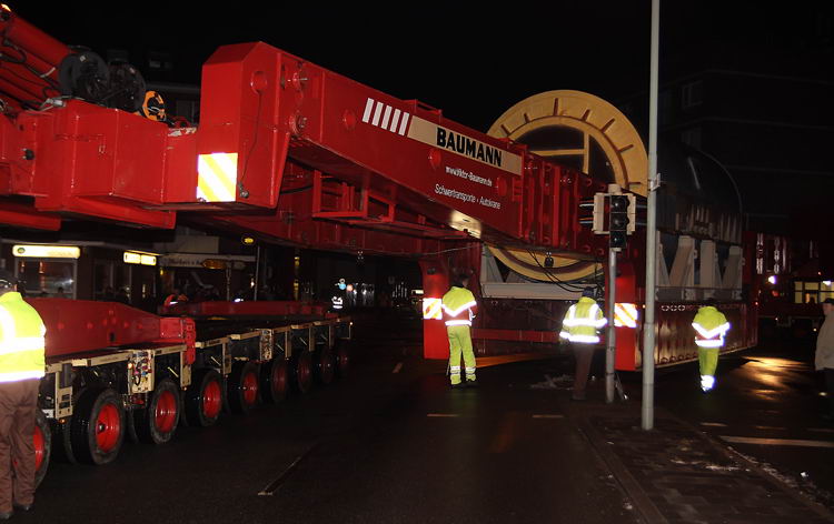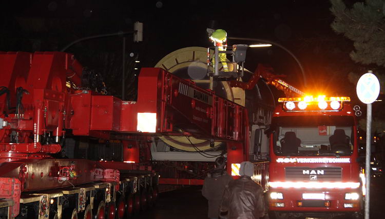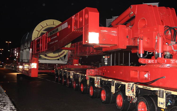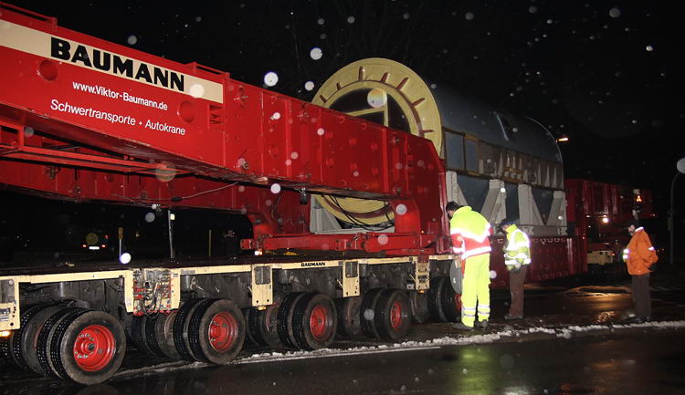 Anfang Februar 2009 musste ein Generator vom Hafen zum Kraftwerk verfahren werden.