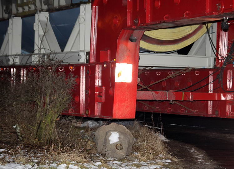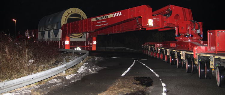 Um nicht mit der Leitplanke zu kollidieren, wurde die Last weit hochgepumpt.