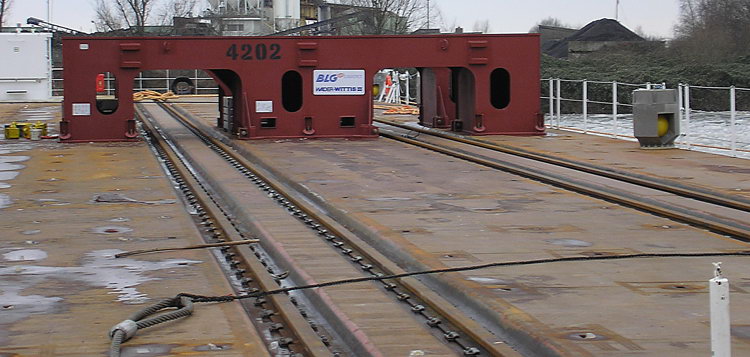 Zwischenzeitlich waren auch Teile der Ladung vom SPMT auf dem Ponton verteilt worden.