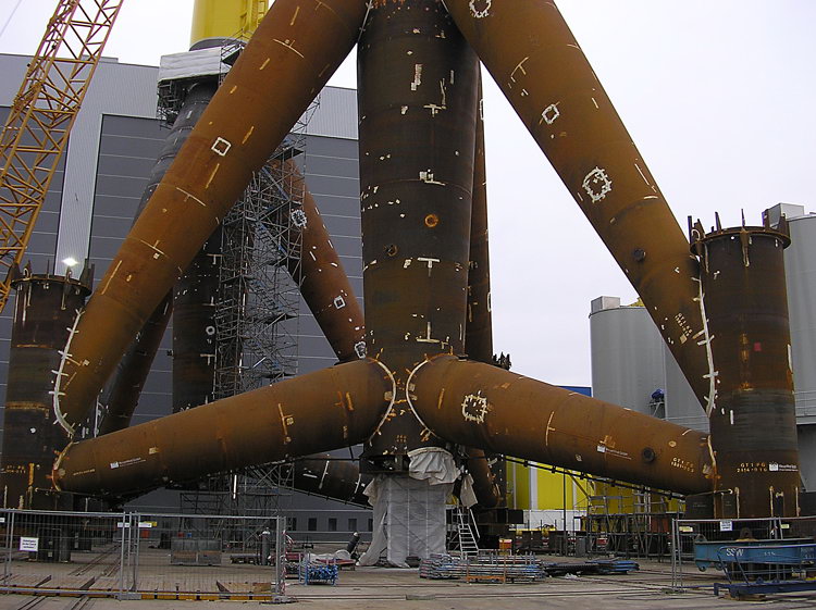 Das Gewicht der großen Dreibeine liegt je nach Auführung zwischen 490 und 900 Tonnen.