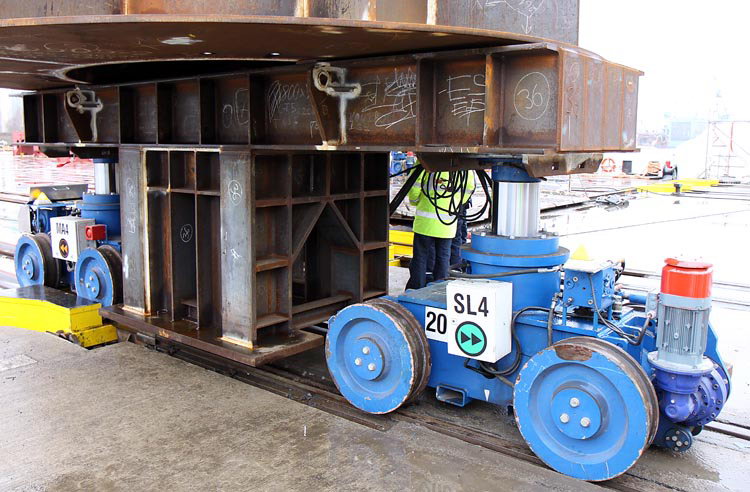 Der Hubzylinder wird hydraulisch betrieben und kann bis zu 200 Tonnen stemmen.
