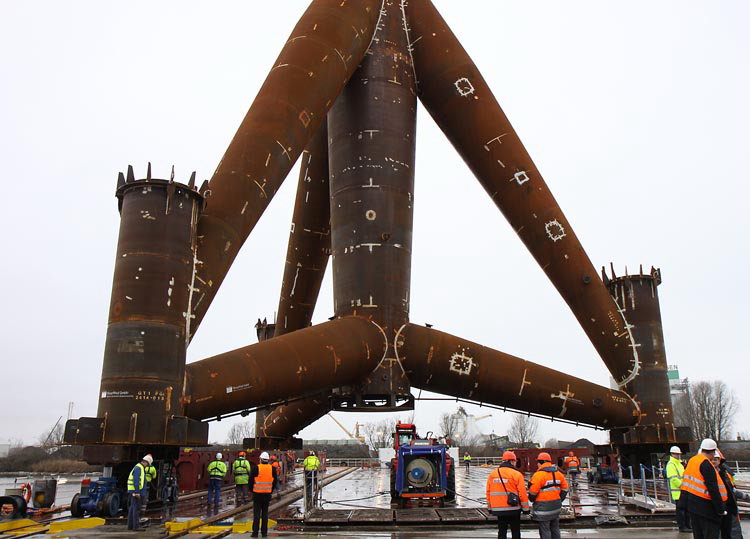 Dann wird das Transportgewicht eines Tripoden bei rund 900 Tonnen liegen.