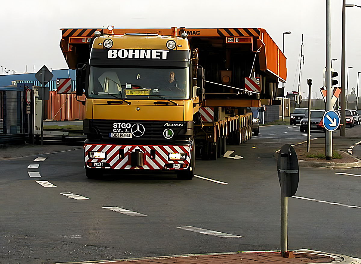 Ende April 2003 wurde von Bohnet wieder ein Spezialtransporter von Kögel Kamag in Bremer- haven angeliefert. Besonderes Problem bei dieser Fracht ist die Breite, denn aufgrund der Breite ist das Überholen selbst auf Autobahnen meist unmöglich. Für die Zufahrt in den Bremerhavener Hafen ist auch wieder besondere Logistik gefragt.
