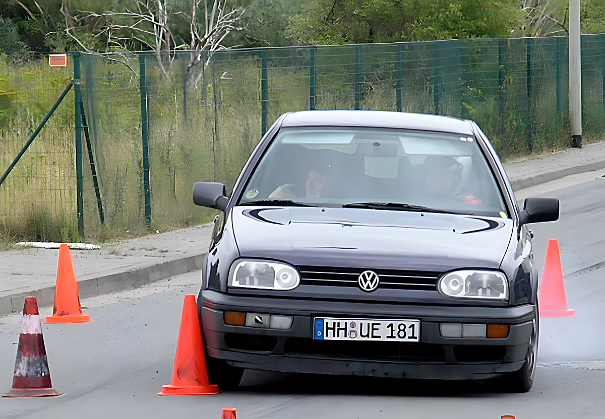 Die teilweise engen Schikanen forderten gutes Augenmaß, denn wer zu früh bremste, verlor Zeit. Wer zu spät bremste, bekam für jede angefahrene Pylone 5 Sekunden geschenkt.