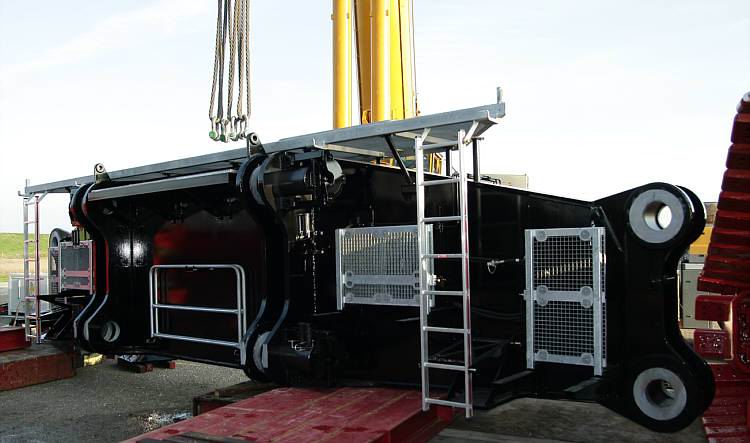 Die Querträger sind gleich mit allen Aufstiegen und Arbeitsflächen ausgerüstet.