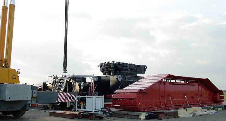 Am Nachmittag des ersten Tages waren die Raupenfahrwerke schon fast komplett montiert.