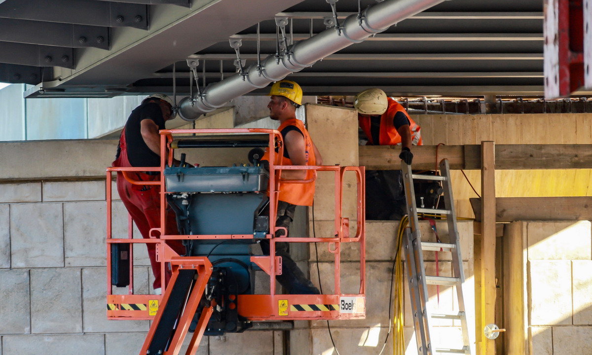 Auf der Südseite schauten die Kollegen mit einem Steiger unter die Stahlkonstruktion.