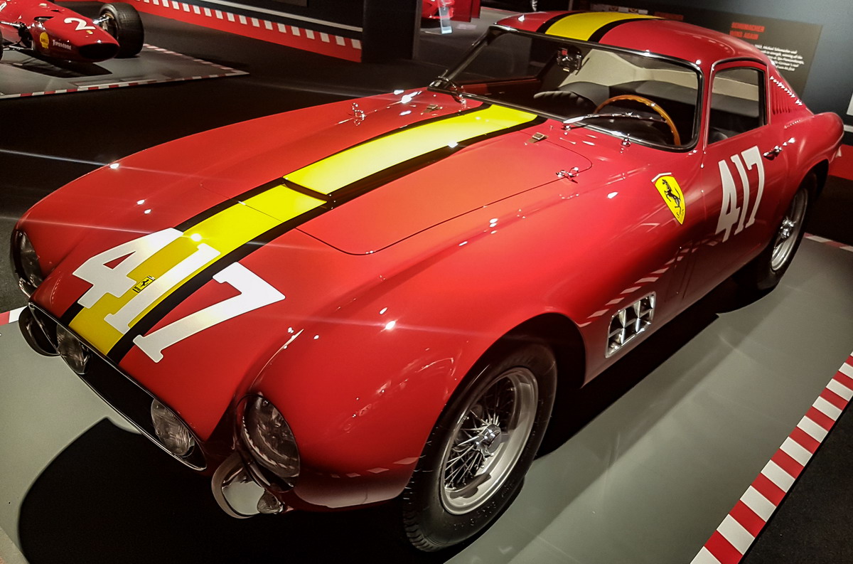Unter der langen Fronthaube des 375 Plus arbeitet ein 4,5-Liter-v12 mit 350 PS und siegte 1954 u.a. beim 24-Stunden-Rennen in Le Mans und der Carrera Panamericana und holte am Ende die Sportwagen Weltmeisterschaft.
