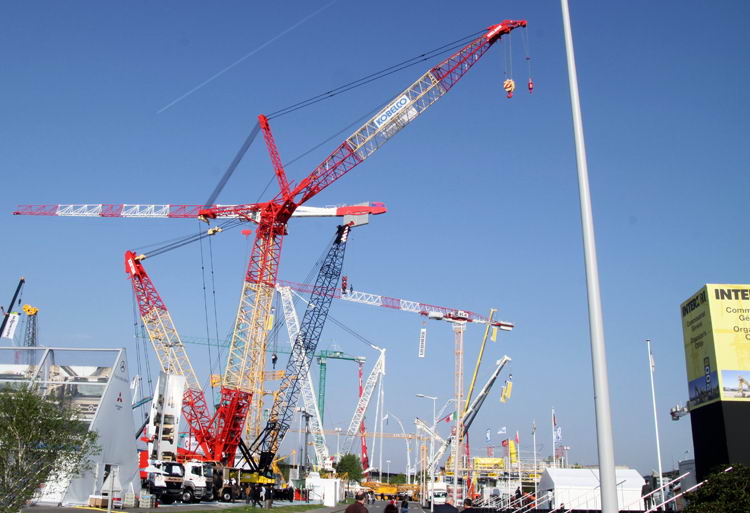 Kobelco stellte den neuen Raupenkran SL 4500 vor, der maximal 400 Tonnen hebt.