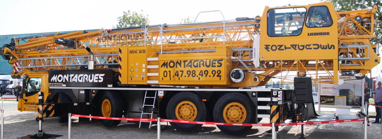 Liebherr hingegen hatte einen großzügigen Stand auf dem unter anderem ein neuer Raupenkran vom Typ LR 1600/2 für den spanischen Betreiber Usabiaga stand.