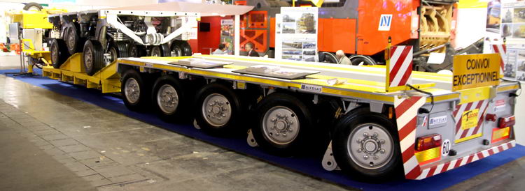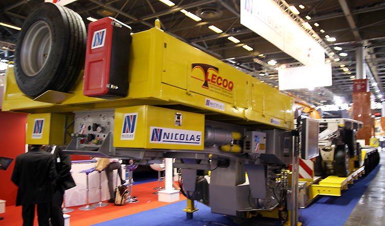 Nicolas präsentierte Lösungen für den Schwerlast- transport. In Deutschland haben derzeit viele Speditionen des Firmen- verbundes "Big Move" diese und ähnliche Auflieger des französischen Herstellers im Fuhrpark.