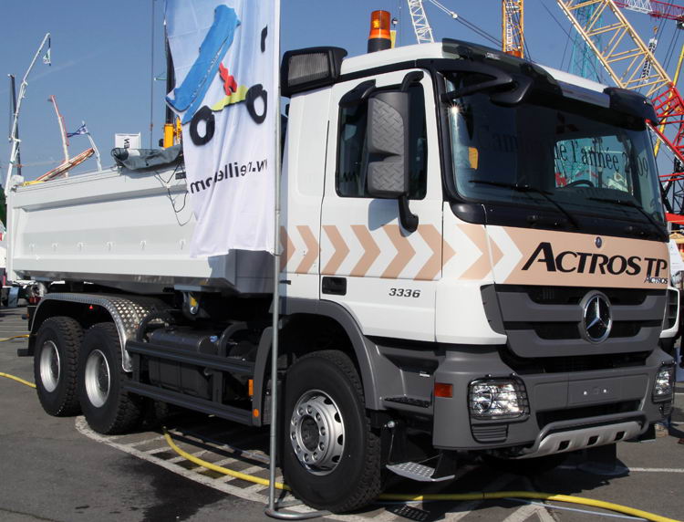Der Actros Bau ist nun ab Werk mit Meiller-Kippbrücken lieferbar.