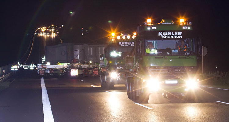 Als Zugmaschine kam ein Volvo FH 16 6x4 mit 750 PS und i-Shift-Getriebe mit Kriechgängen zum Einsatz.