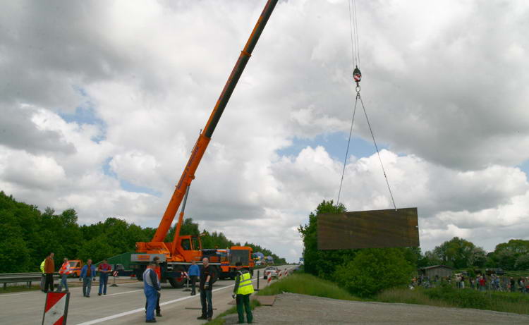 Während auf der zwischenzeitlich komplett gesperrten Autobahn die provisorische Zufahrt wieder in Betrieb genommen wurde, rollten die drei Röhren heran.