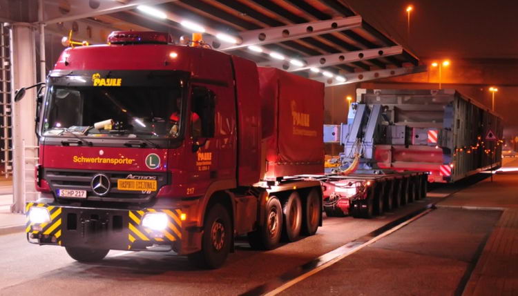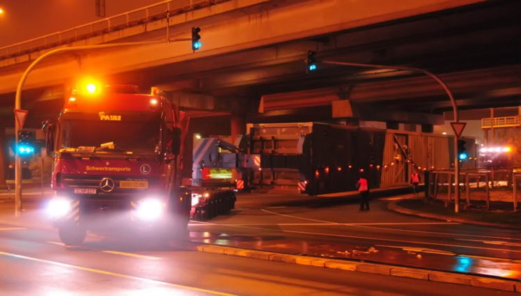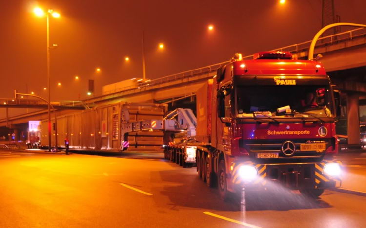 Anfang November 2008 lohnte es sich besonders, mal nicht während der Nachtstunden im Bett zu liegen, denn dieses imposante Gespann rollte von der A7 in den Hafen.