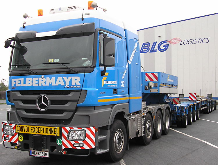 Bautransporter Im Sommer 2013 kam dieses Gespann nach Bremerhaven. Als Zugmaschine wurde dieser Actros Titan 4165 des Transportunternehmens André Voß...