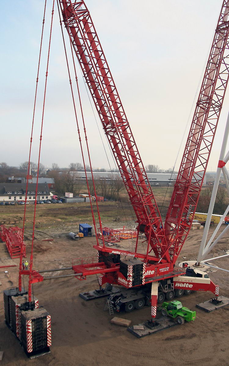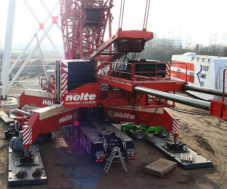 Der Liebherr-Oberwagen mit Schwebeballast im Detail aus der Vogelperspektive.