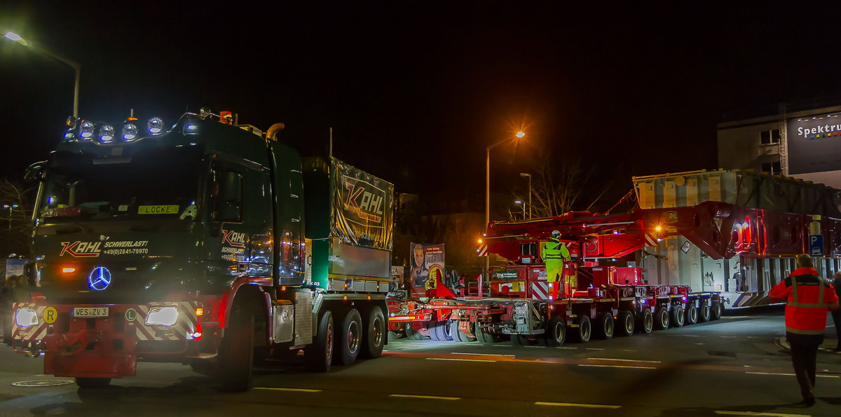 Dem Ziel entgegen Und der nächste Stop in der Dunkelheit: Übernahme durch die Kollegen aus Bremervörde. Bis hierher zog nur eine Actros Titan 3360 das...