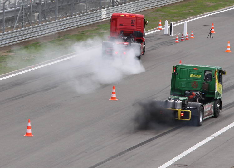 Zwischendruch mussten die HS-Showtrucks neue Wettkampfteilnehmer auf die Bahn führen.