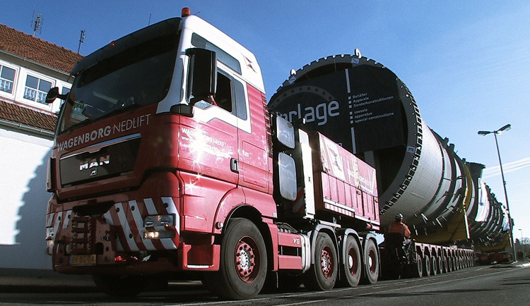 Jetzt konnte der neue MAN TGX 41.680 die Last über die Straßen ziehen.