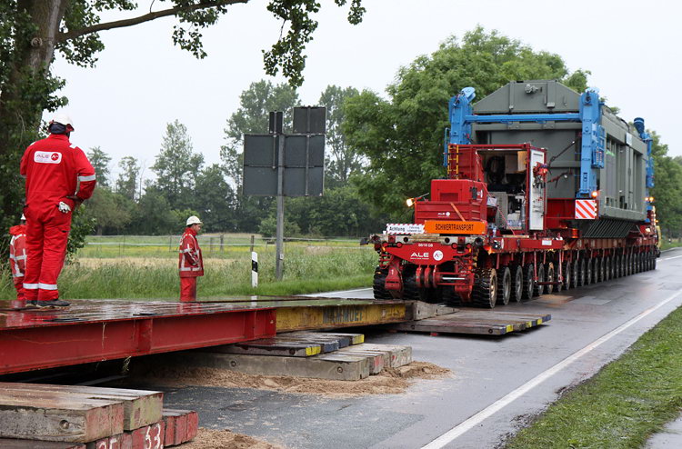 Ein 380 Tonnen schwerer Trafo wurde vom Nato-Anleger in Bingum gefahren.