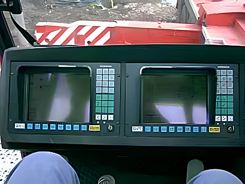 So, dieses Bild kennst Du ja: So sieht es aus, wenn man Herr der Joysticks ist. Hier ist auf den Displays alles Wichtige zu sehen: Links die Motordaten und auf dem rechten Monitor sind Ausleger-Werte zu sehen.