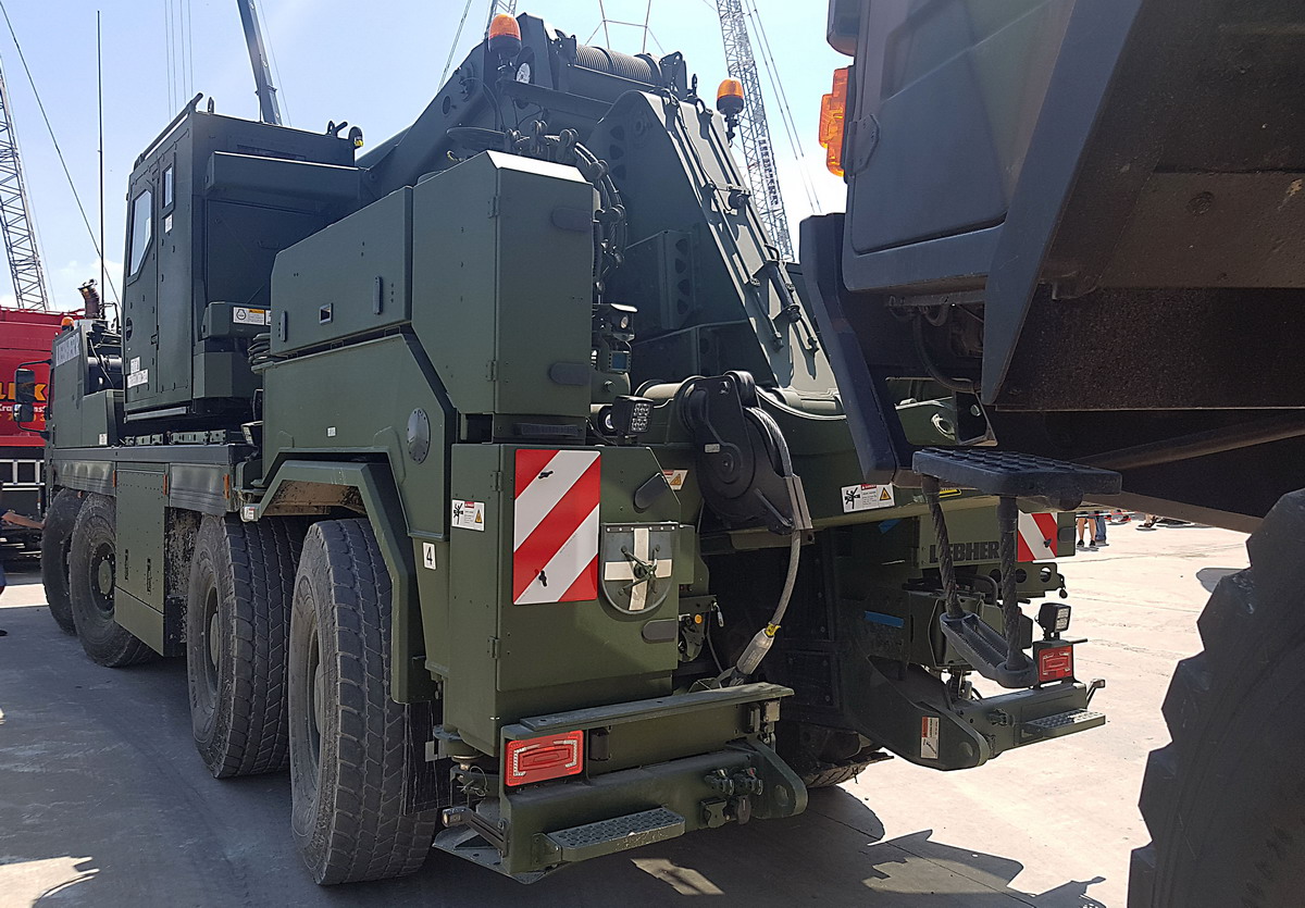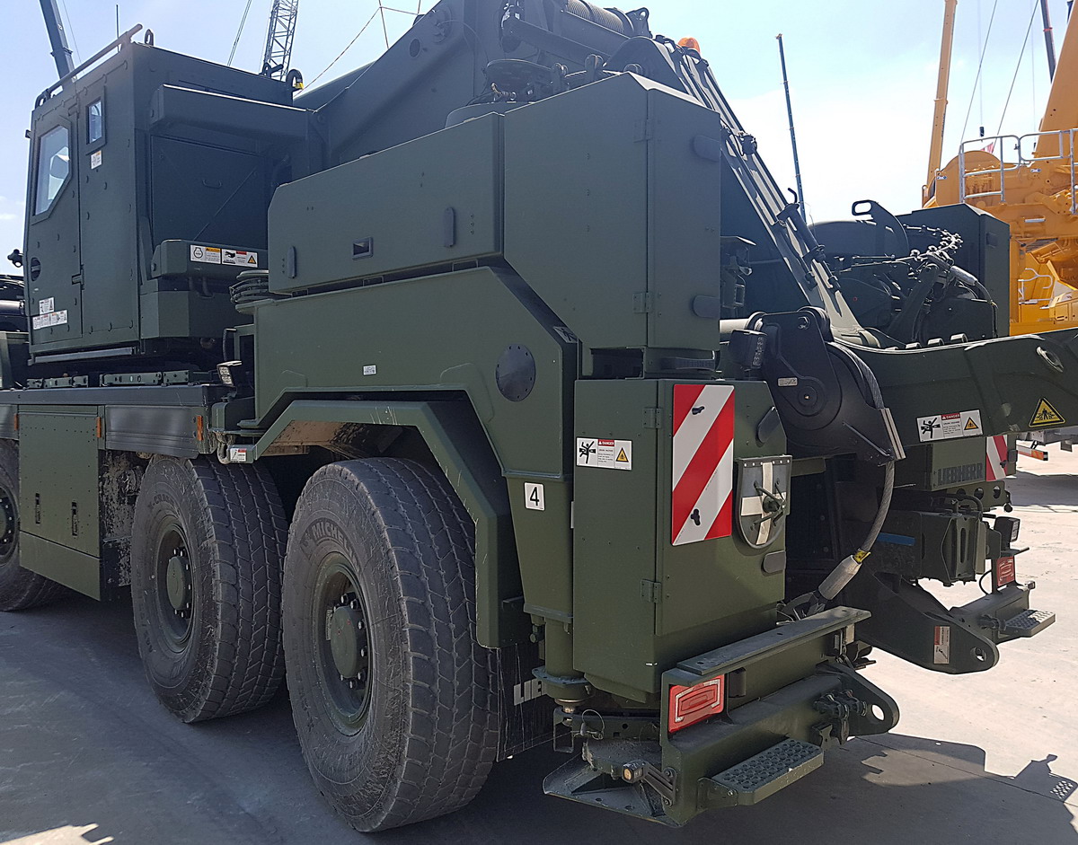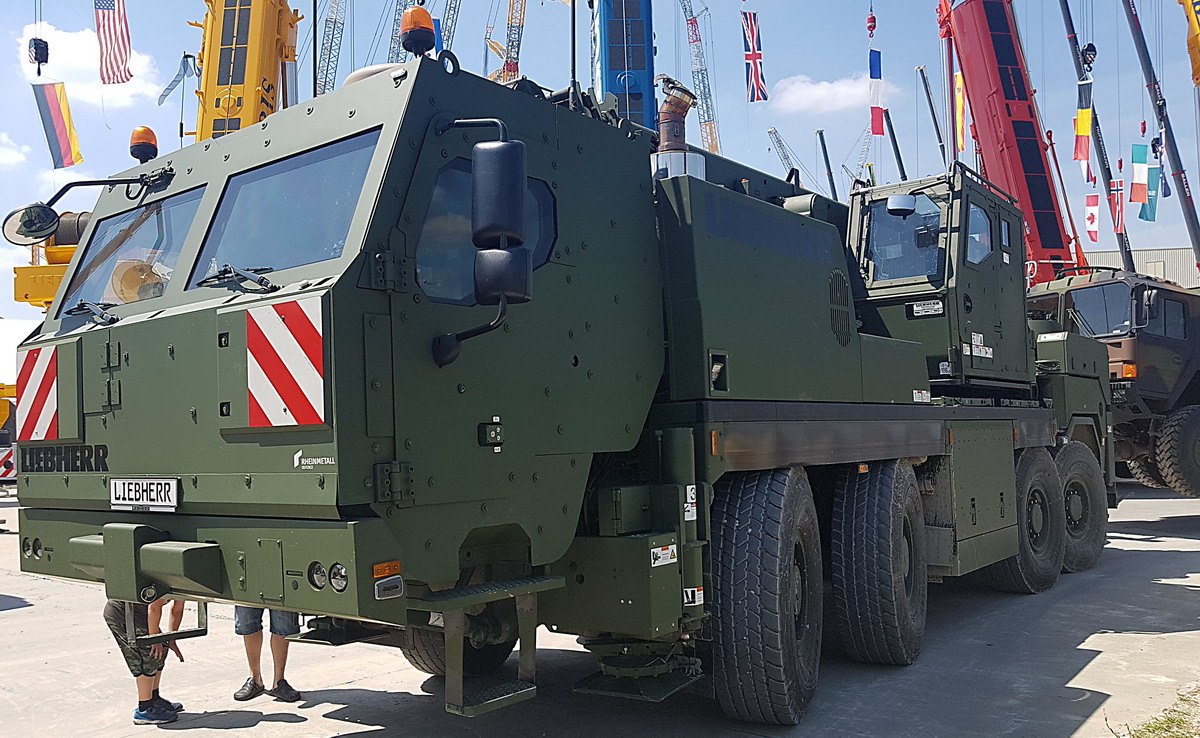 Ein Großteil der Schutztechnik des Liebherr-Krans stammt Rheinmetall Defence, wo man sich auf Panzerungen spezialisiert hat.