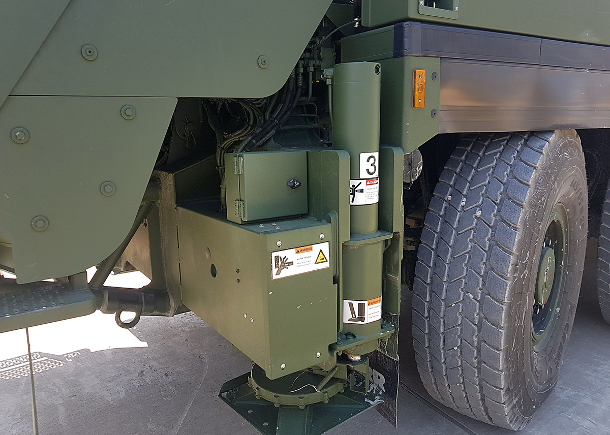 Der Allrad-Antrieb mit Allradlenkung (8x8x8) bekommt die Leistung über ein automatisiertes ZF-Schaltgetriebe mit Drehmomentwandler.