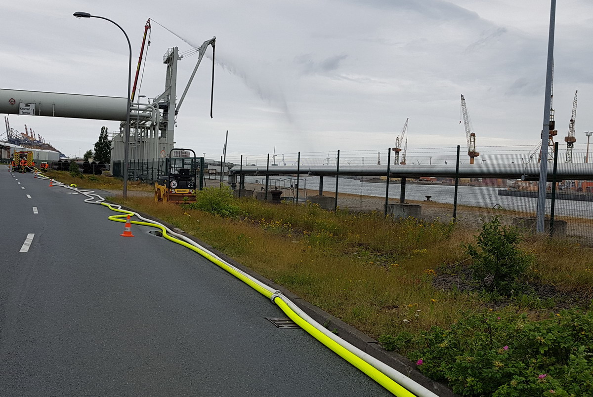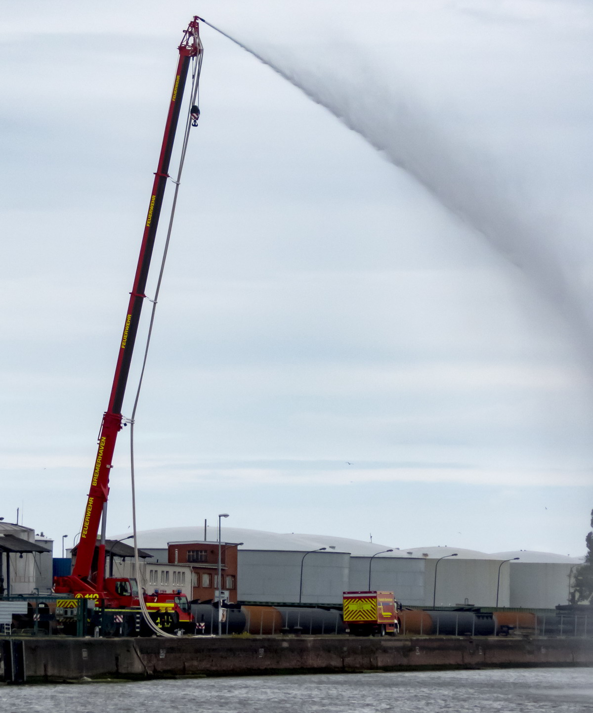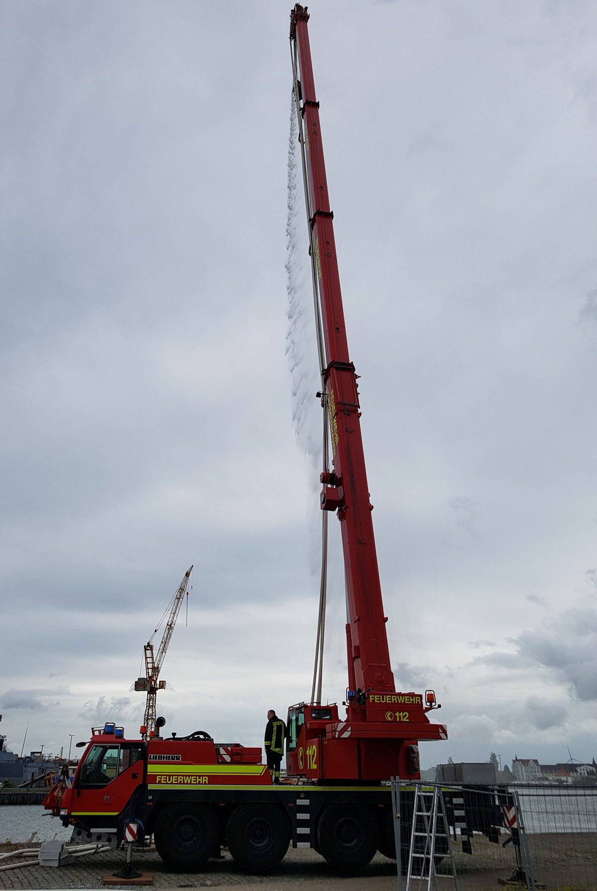 Gerade bei Einsätzen im Hafen gibt es durch die erreichbare Höhe des Löschmonitors eine wertvolle, zusätzliche Alternative.