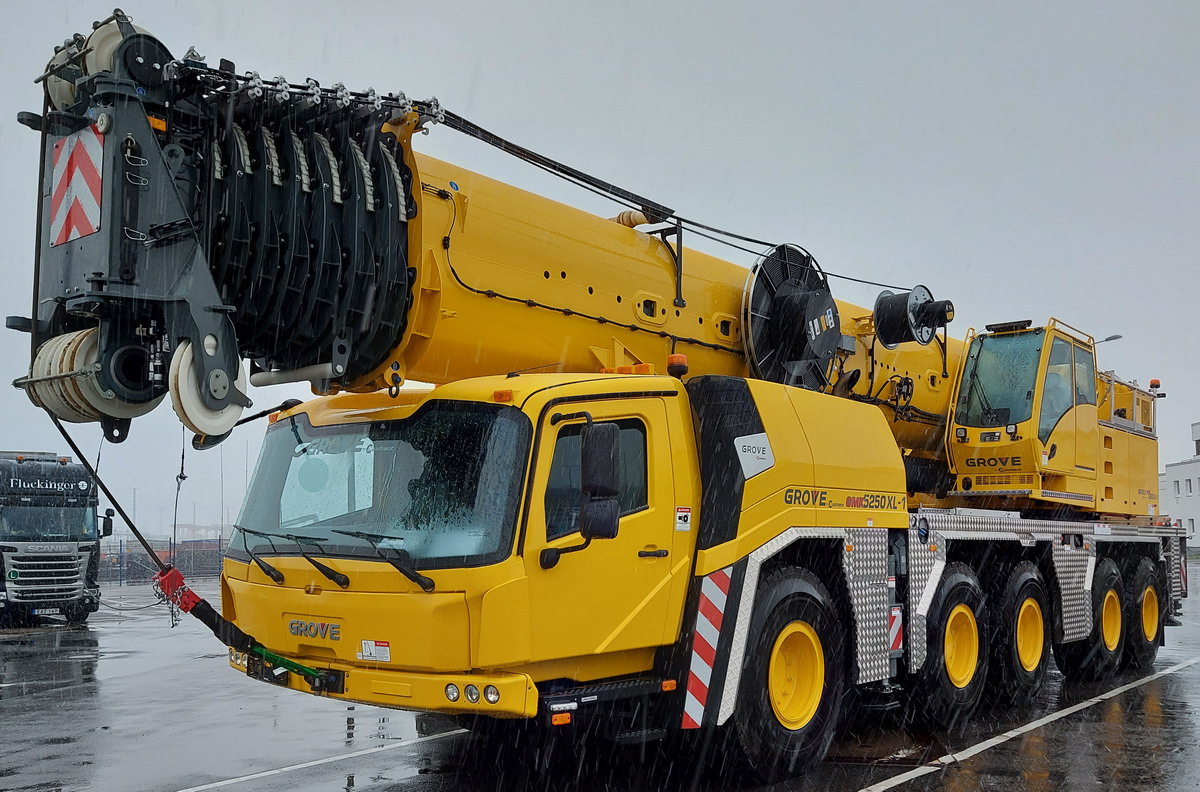 Vor der Premiere des Herstellers erwischt Anfang Juli 2000 kam schon wieder ein nagelneuer Grove-Kran zur Verschiffung nach Bremerhaven. Diesmal ein GMK...