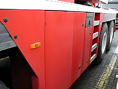 Dieser Kran ist ausschließlich für den US-Markt bestimmt, da mit dieser Länge die für das Gewicht notwendige Last- Verteilung bei nur 4 Achsen erreicht wird.