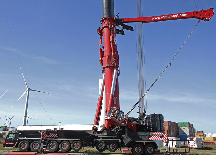 Einige technische Daten des LTM 1150-5.4E: max. Traglast 150 t, Teleskopausleger 66 Meter, max. Hubhöhe 92 Meter.