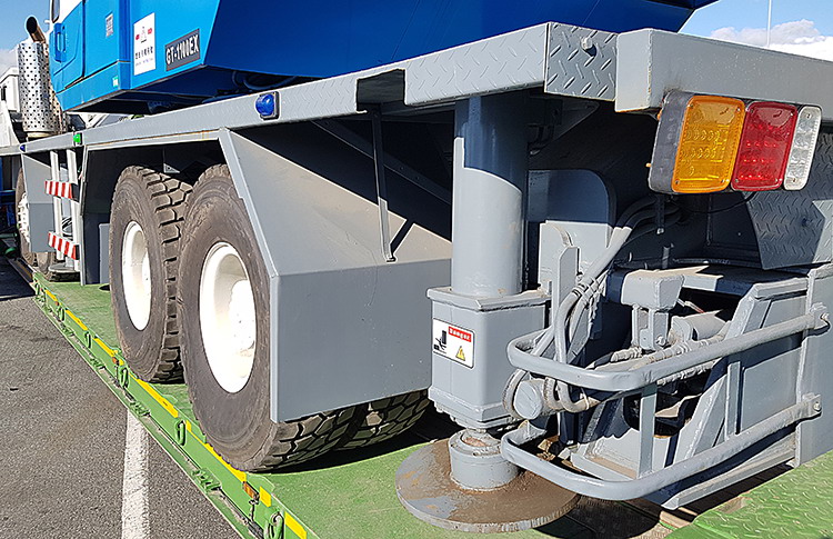 Beim Original-Tadano 60-Tonner schließt dieser mit dem Unterwagen recht bündig ab.