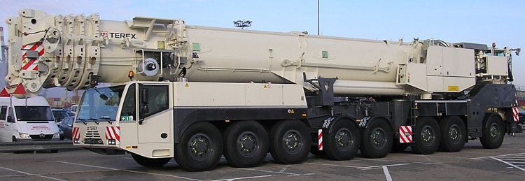 Im Herbst 2011 wartete dieser elfenbeinfarbene Terex AC 500-2 im Bremerhavener Hafen.