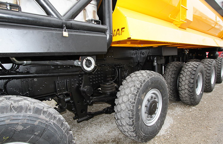 Die ersten zwei Achsen werden gelenkt und luftgefedert.