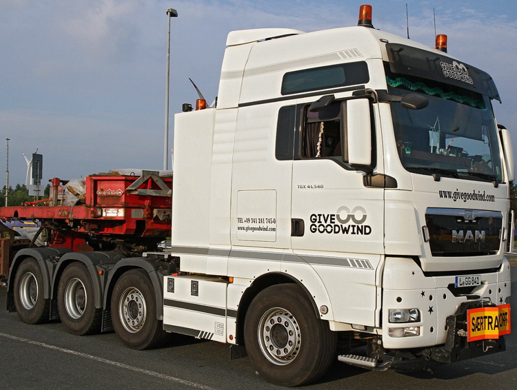 Die Zugmaschine war ein MAN TGX 41.540 von Give Goodwind aus Leipzig.