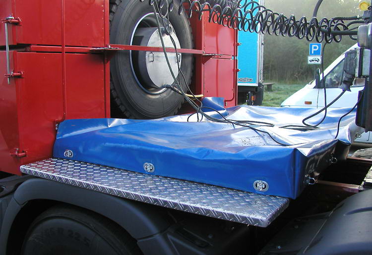 Für Sicherungsgurte und -ketten ist eine Wanne mit Planenabdeckung vorhanden.
