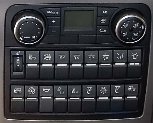 Die Schalter für die Beleuchtung und Fahrwerks- einstellungen sind unter der Klimaanlage zu finden. Hier hat der Fahrer sofort alles im Blick.