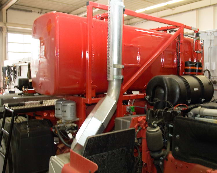 Der Zusatztank ist vor der Vorlaufachse zu finden.