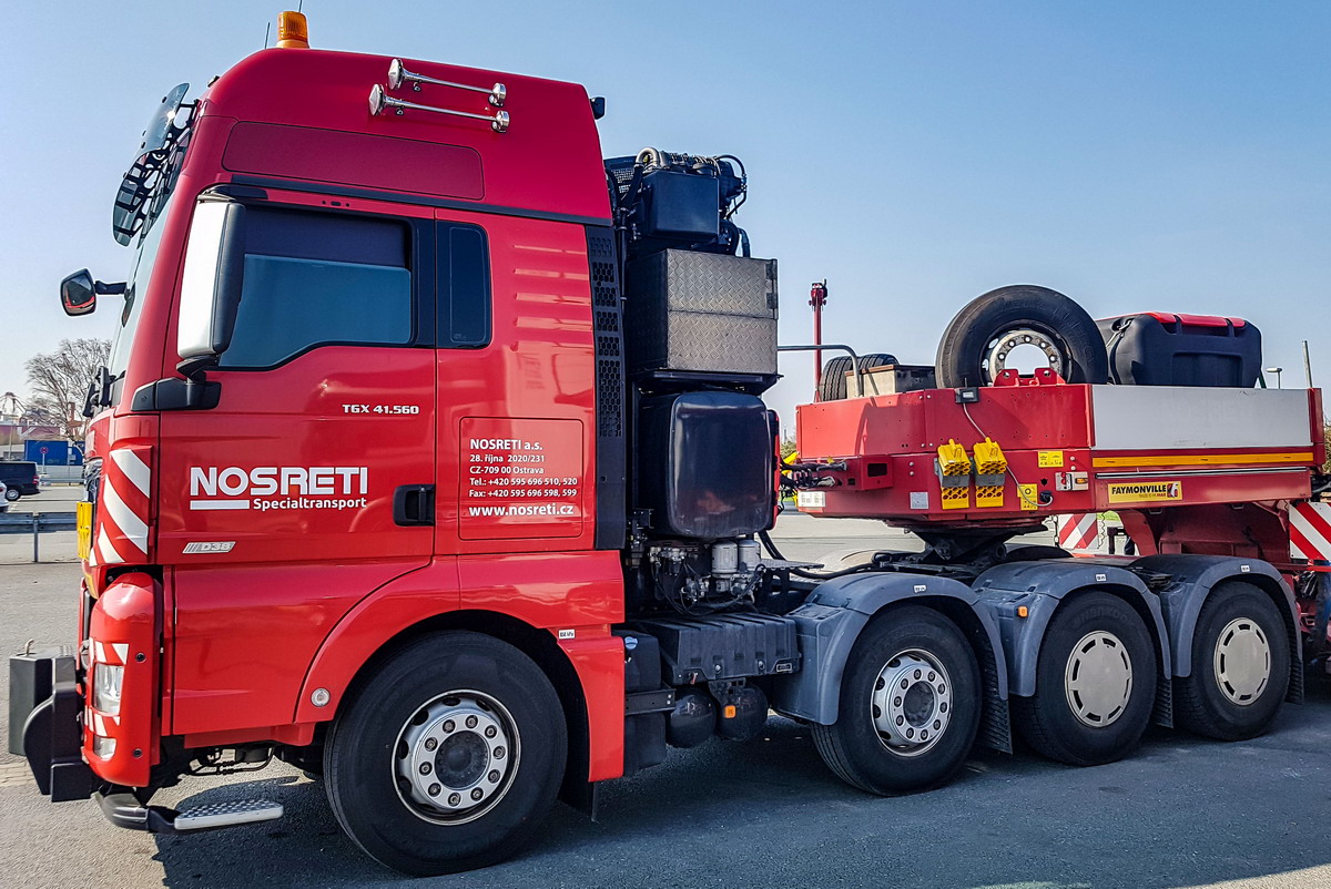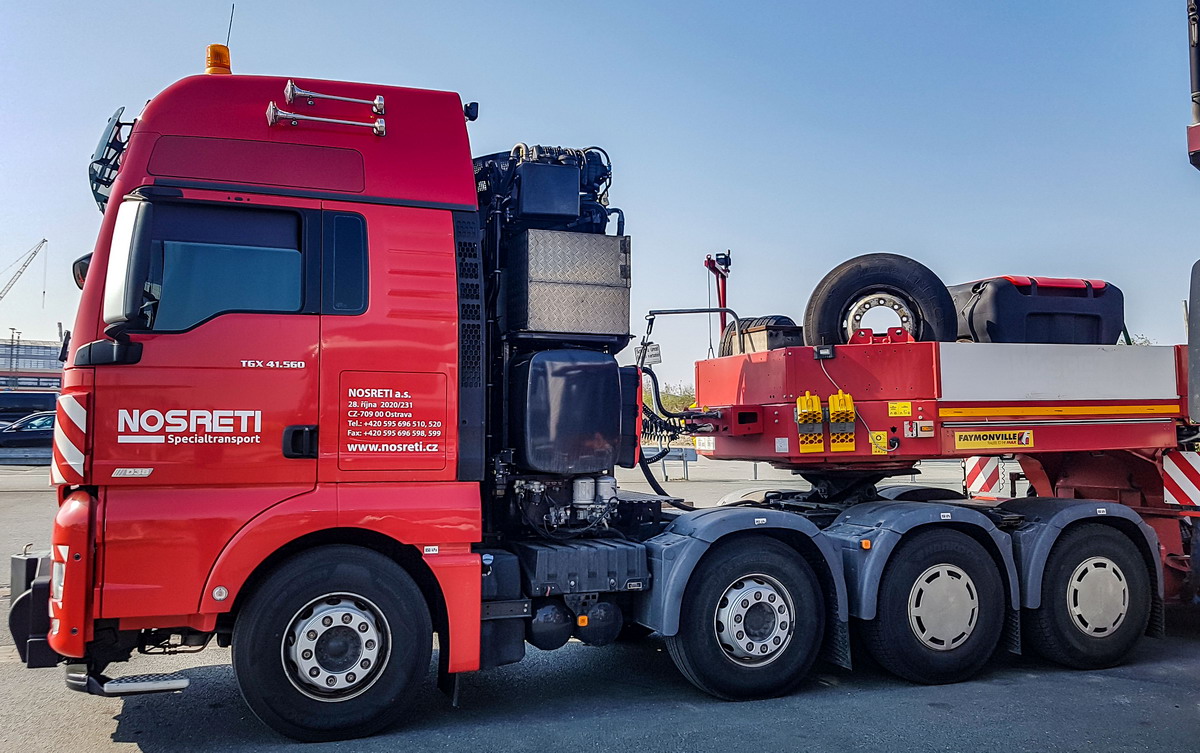 Auf dem Faymonville stand bei der Pausenzeit nur ein Draiachsmodul, welches zuvor noch vor dem Tiefbett rollte.