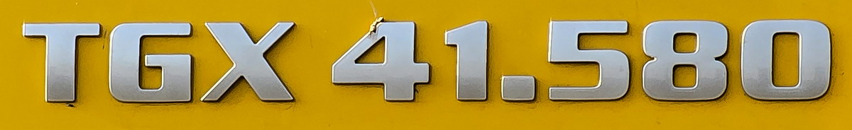 Das Typenschild an der Tür verrät den Motor der Zugmaschine mit 580 PS.