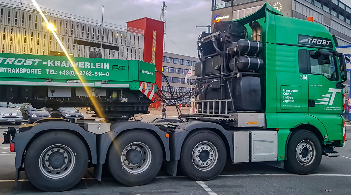 Im August 2019 parkte dieses beladene Gespann aus Österreich eines Morgens im Bremerhavener Hafen.