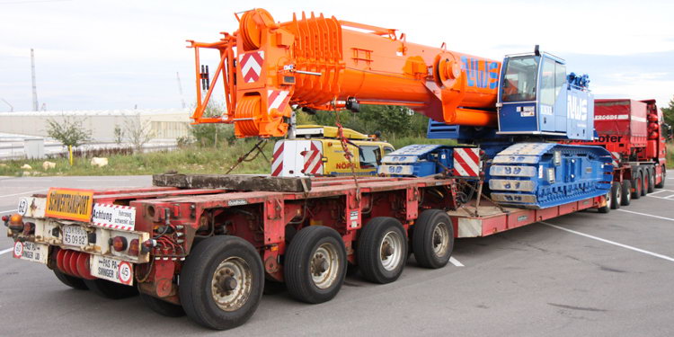 Als Ladung stand ein nagelneuer Liebherr LTR 1100 auf dem Auflieger.