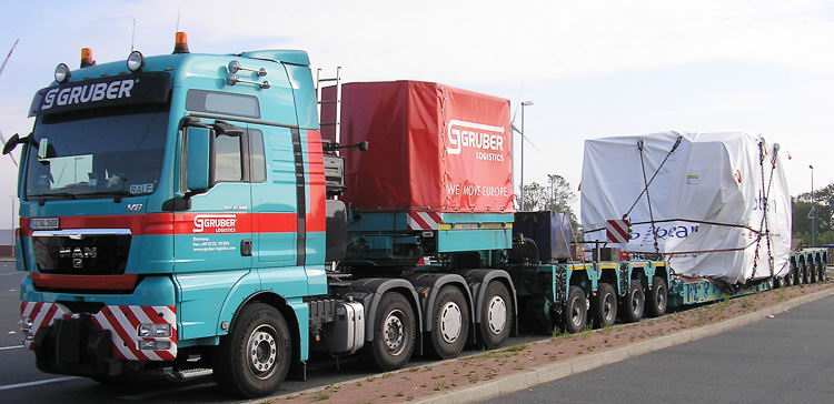 Bohrmaschinentransport Trucks von Max Bögl kommen nur recht selten nach Bremerhaven, doch dieser MAN TGX 41.680 brachte 2010 eine große Bohrmaschine...