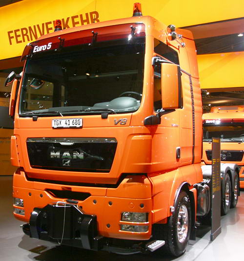 Auf der IAA 2008 zeigte MAN den aktuellen Top-Schwerlast-Truck in leuchtendem Orange.