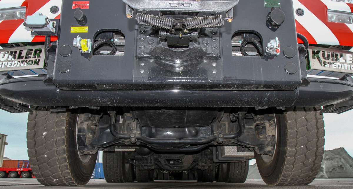 Die mächtige Ballastpritsche reicht hinten bis ans erlaubte Limit, was den Überhang angeht.