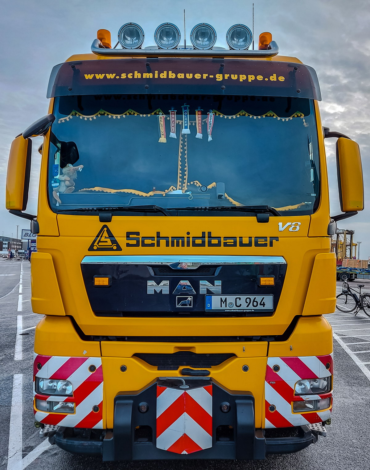 Nicht mehr nagelneu, aber immer noch schick steht dieser MAN TGX 41.680 von Schmidbauer auf seinen vier Achsen.