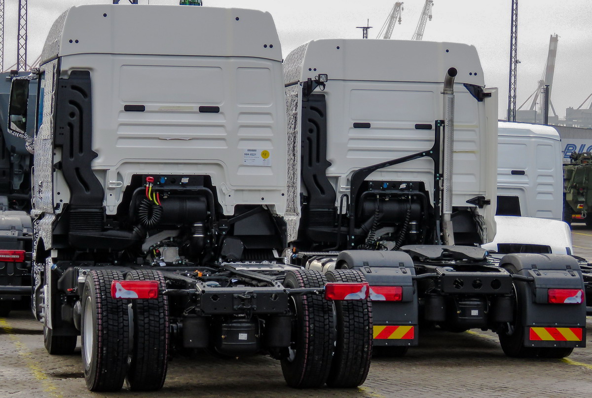 Bei der hinteren Zugmaschine fehlt das Windleitblech hinter dem Fahrerhaus.
